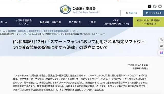 Following the EU, Japan passed the "Act on Promotion of Competition for Specified Smartphone Software" on June 12th, expected to take effect by late 2025.
