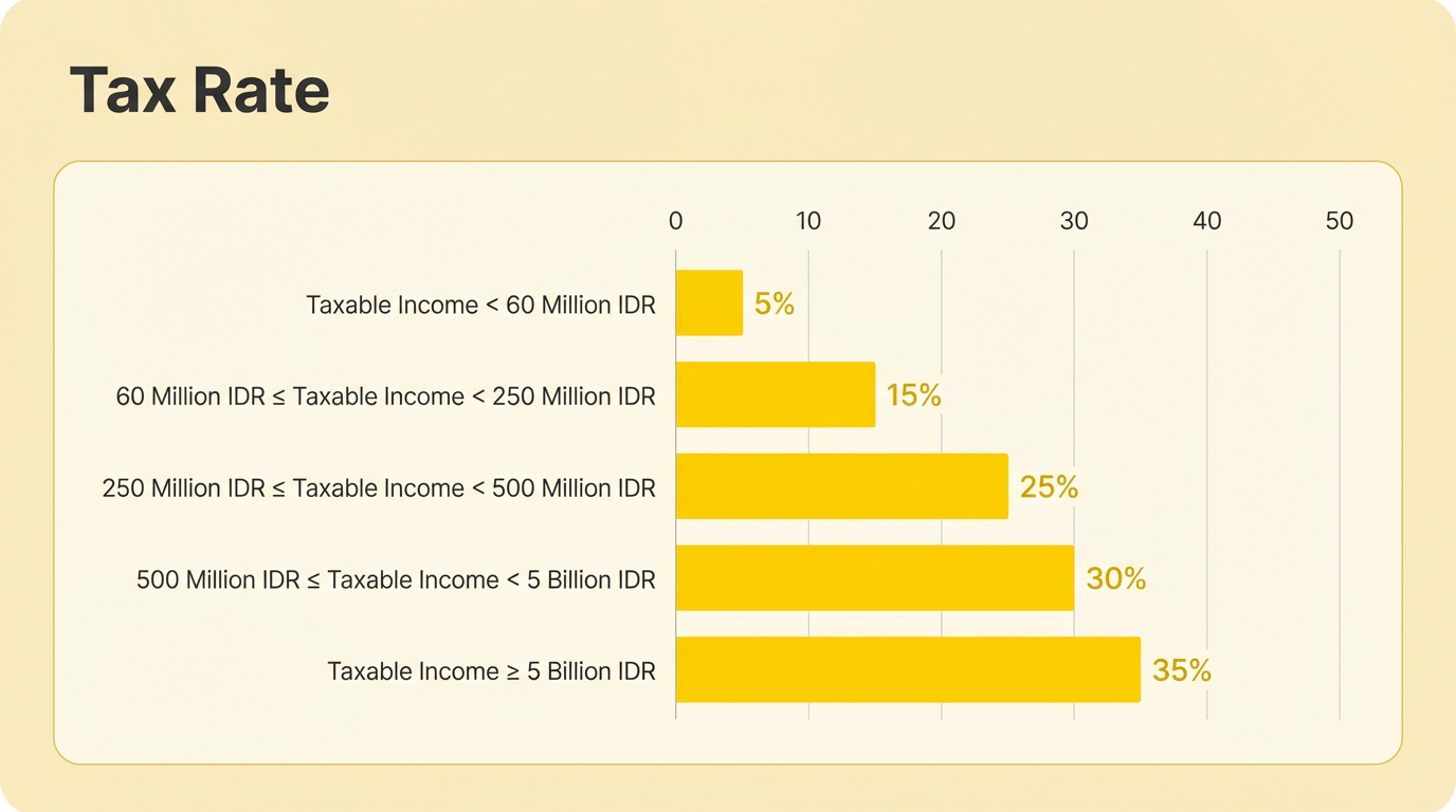 Stamp Duty: A fixed rate of IDR 10,000 on specific documents (agreements, notarial deeds, high-value securities).
