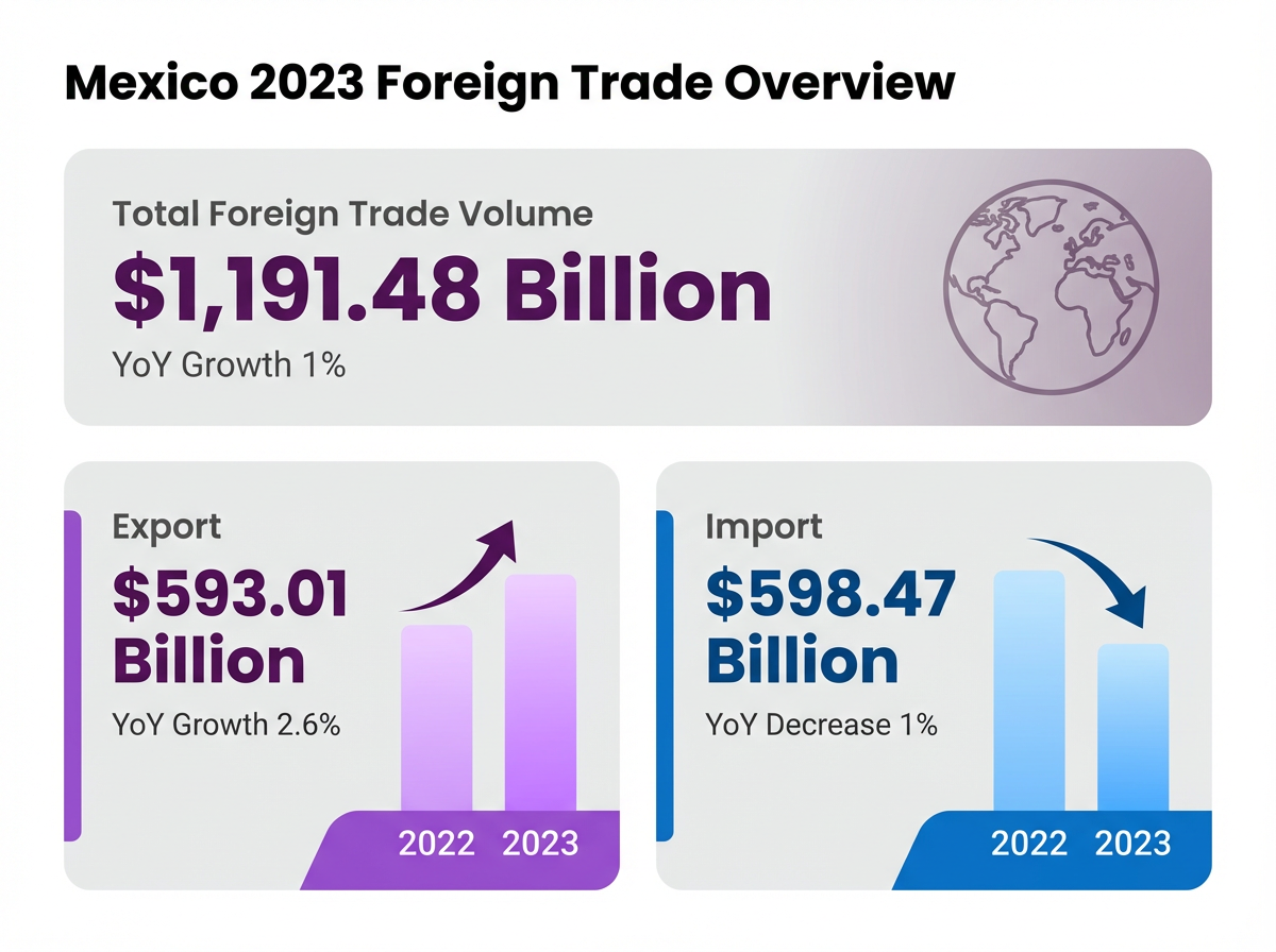 Trade: A leader in free trade, Mexico has agreements with over 50 countries. Total trade reached $1.19 trillion in 2023.