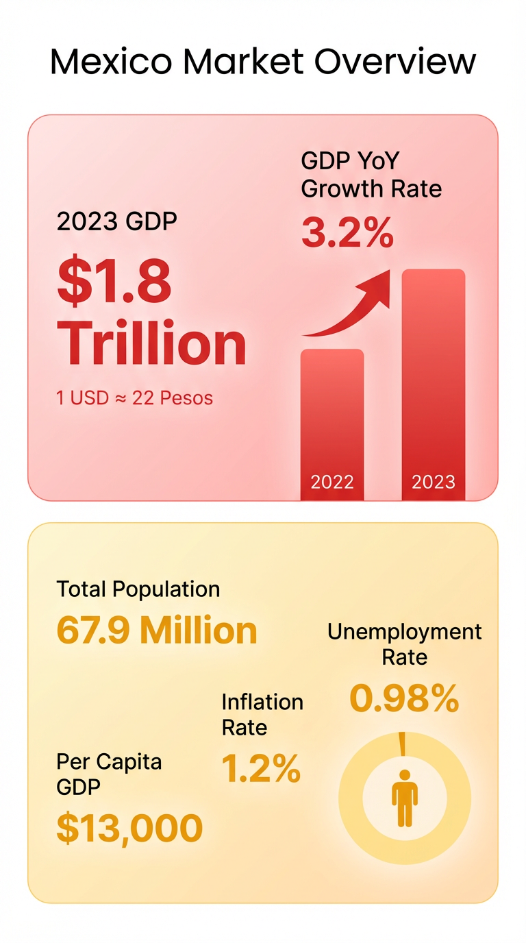 Economic Rank: In 2023, Mexico rose to become the 12th largest economy globally, surpassing South Korea, Australia, and Spain.
